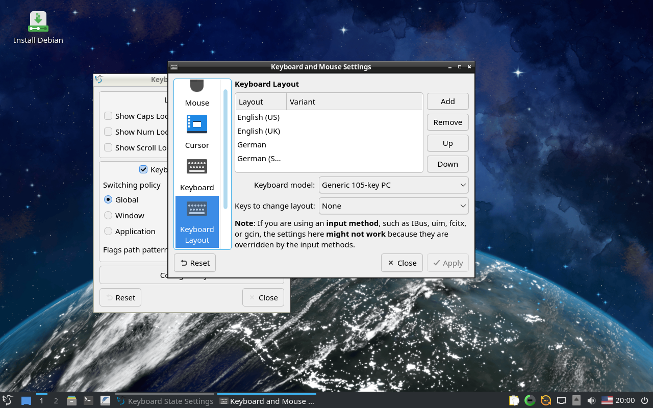 If not, don't hesitate. You can easily add it. Just right-click on the icon, select Configure "Keyboard State Indicator" and click on Configure Layouts.