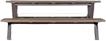 A small wooden bench I'm guessing for the staff. The food is half eaten and still on the plate.