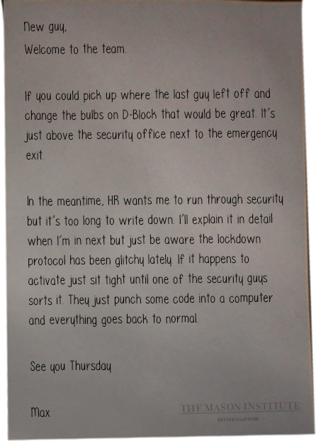 Alright, that unlocked the door. Let's see if this Dr Mason is home.